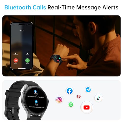 Bluetooth 5.3 Calling & Smart Notifications The built-in microphone and high-performance speaker ensure clear audio quality. Stay connected with the ability to make and receive calls, even when your is driving or cooking. Receive real-time message notifications from SMS, Facebook, WhatsApp, Instagram, TikTok, Twitter, and more, so you never miss important updates.