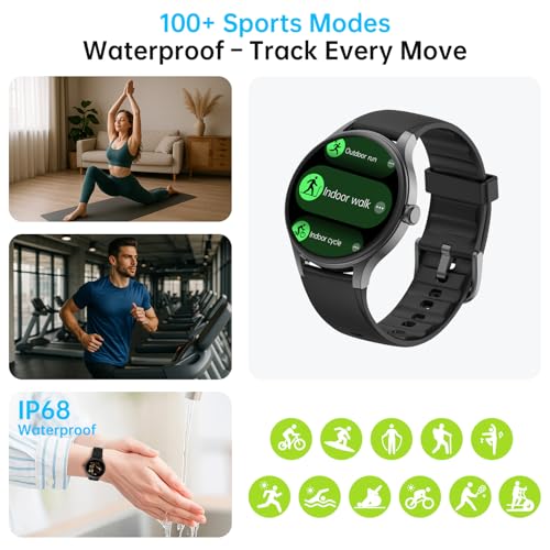Smart Watch for Men Women, 1.27″ HD Touchscreen Fitness Tracker, Bluetooth Calling, 100+ Sports Modes, Heart Rate Sleep Monitor, DIY Dial, IP68 Waterproof, Compatible with Android & iOS