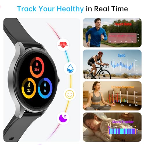 24/7 Health Monitoring & AI Voice Assistant Track your heart rate, sleep quality, steps, distance, and calories burned with 24/7 health monitoring. Sync with the VeryFit app via Bluetooth for detailed health insights. With AI Voice Assistant, you can check the weather, set alarms.