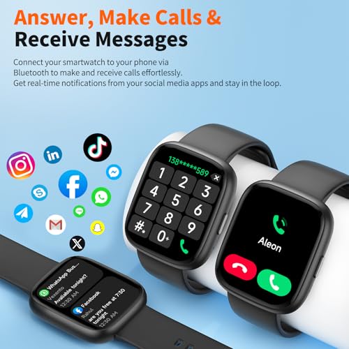 【Bluetooth 5.3 Calling & Smart Notifications】 Answer or make calls directly from your wrist with stable Bluetooth 5.3 connectivity. The built-in microphone and speaker deliver clear, hands-free audio. Stay connected with instant notifications from WhatsApp, X (Twitter), Facebook, Instagram, and more—so you never miss an important message, even when your phone isn’t nearby.