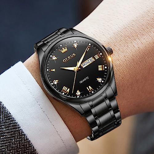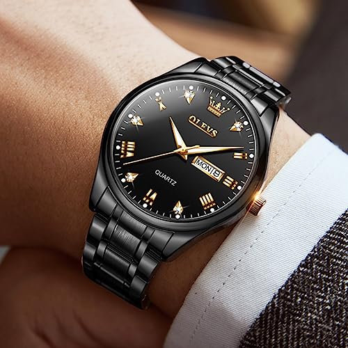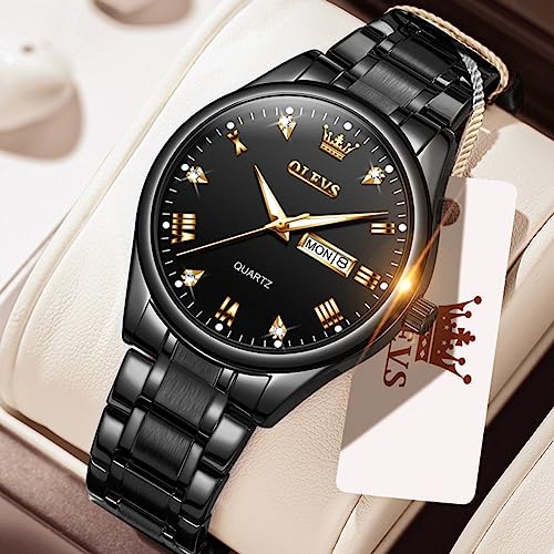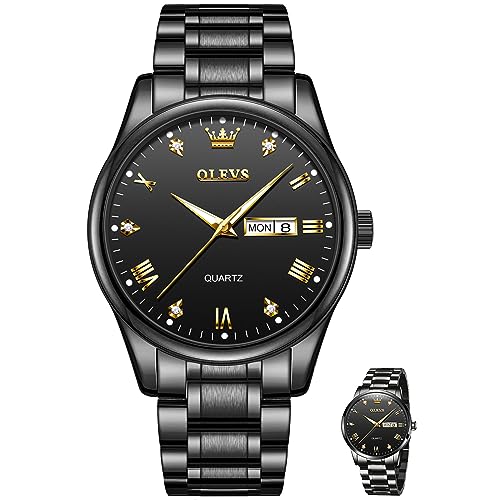Men’s Casual Stainless Steel Watch, Big Face Round Analog Quartz Watch with Day and Date, Classic Waterproof Simple Dial Dress Watch for Men, Gold Silver Black Band