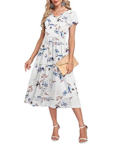 MISFAY Womens Summer Dress Short Sleeve V Neck T-Shirt Dresses Fashion Casual Fit Flowy Tiered Boho Beach Vacation Sundress