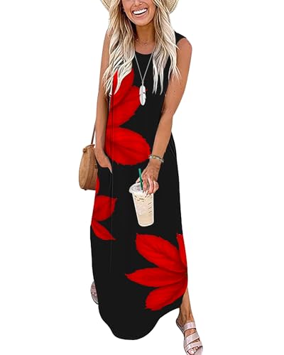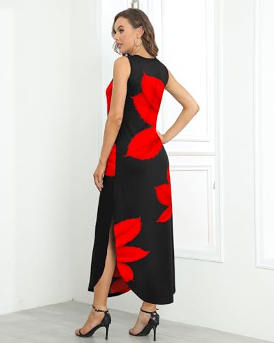 WNEEDU Women’s Maxi Dresses 2026 Summer Sleeveless Dress Casual Cover up Loose Sundresses Split Tshirt Dresses with Pockets