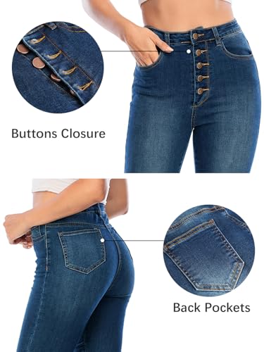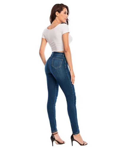 Ecupper Womens Skinny Fit Jeans Stretch High Waist Denim Jeggings with Pockets