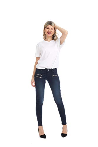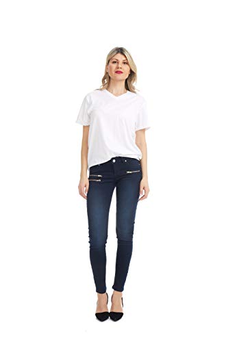 Suko jeans Women’s Mid Rise Biker Skinny Stretch Denim Jean with Tummy Tucker