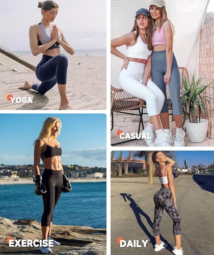 Gayhay Capri Leggings with Pockets for Women – High Waisted Tummy Control Soft Compression Yoga Pants for Workout Running Gym