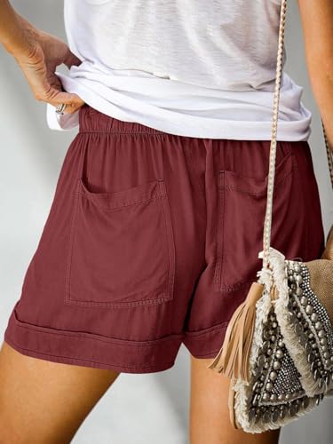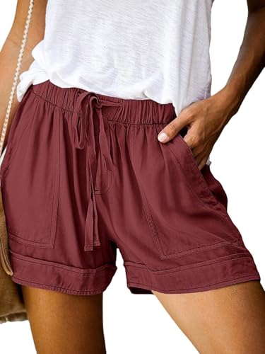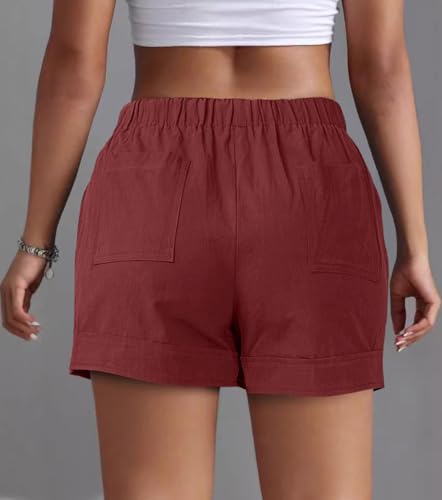 Womens Shorts Casual High Waisted Drawstring Summer Elastic Waist Trendy Ladies Cotton Clothes with Pockets