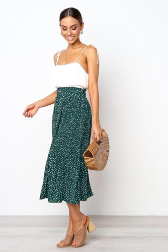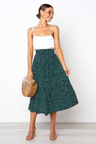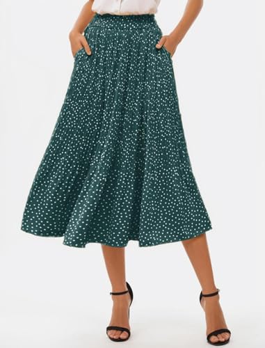 Oyamiki Women’s High Waisted Polka Dot Pleated Long Swing Skirts A Line Midi Skirt with Pockets Dressy Casual Trendy Summer