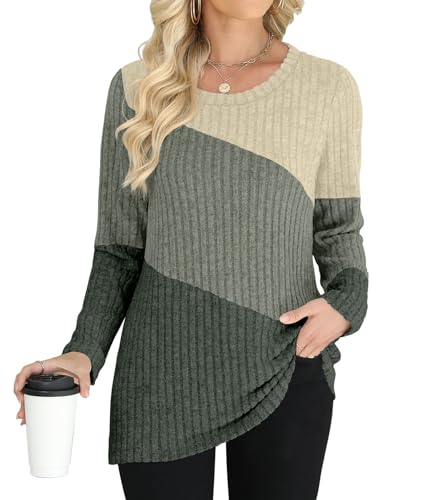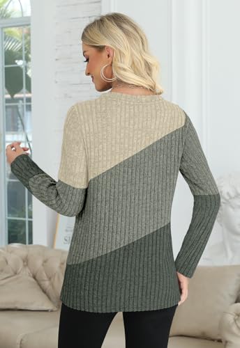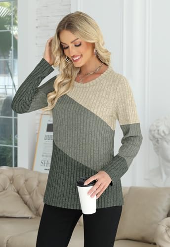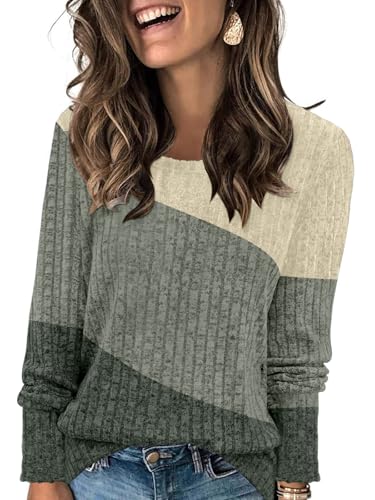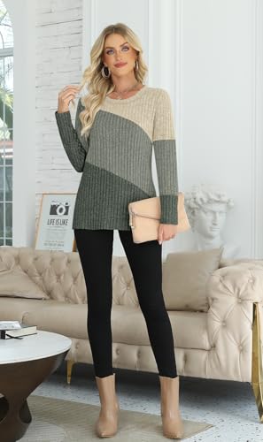 AYIFU Women’s Color Block Crewneck Sweater Lightweight Long Sleeve Casual Tunic