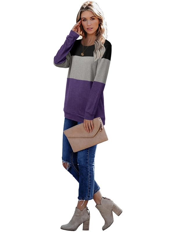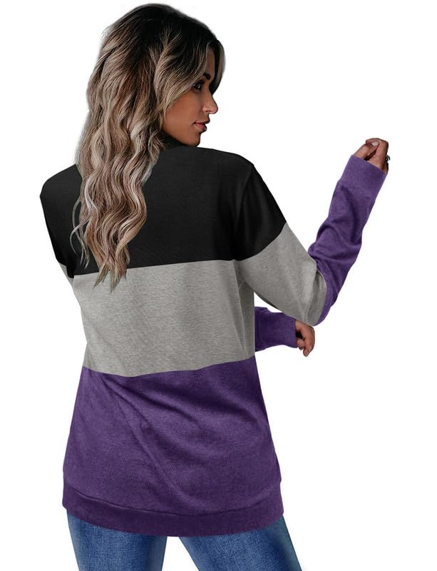 ELF QUEEN Women’s Long Sleeve T Shirt Color Block Pullover Crew Neck Loose Comfy Casual Tops