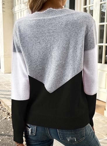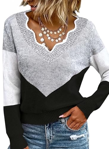 RANPHEE Womens Long Sleeve Fall V Neck Color Block Knit Pullover Sweater