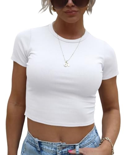 Crop Tops for Women Short Sleeve Summer Shirts Basic Cute Baby Tees Slim Fit Rib Knit Trendy Top 2026 Y2k