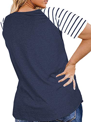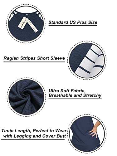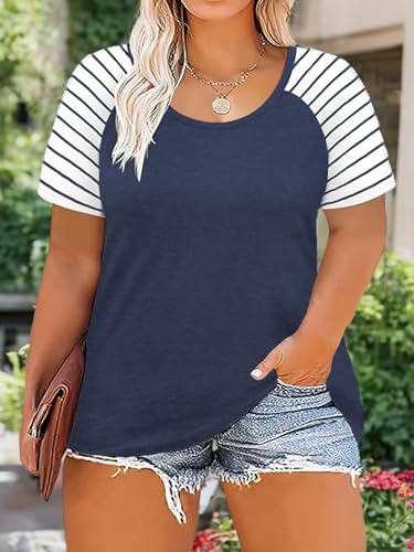 DOLNINE Women’s Plus Size Tops Striped Raglan Tee Shirts Casual Tunics Blouses