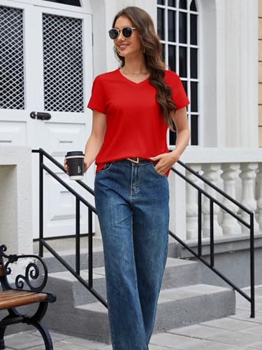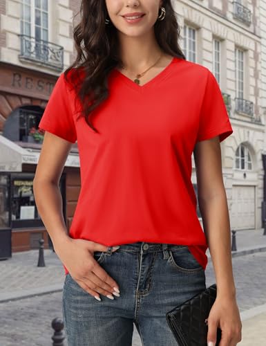 MAGCOMSEN Women’s Cotton T-Shirt Short-Sleeve V-Neck Classic-Fit Casual Shirt Breathable Tee Summer Basic Tops