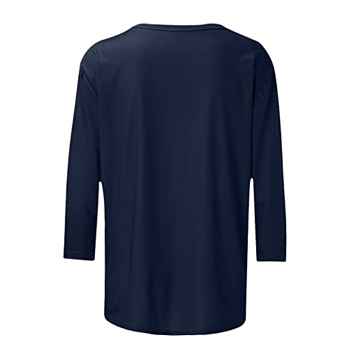 Women Casual 3/4 Sleeve Tops Loose Three Quarter Length Sleeve Shirts Comfy Crew Neck Blouses Cozy Plain Pullover Tee