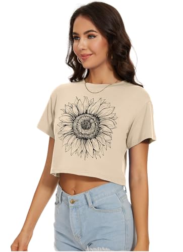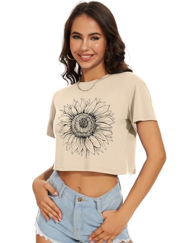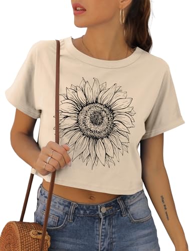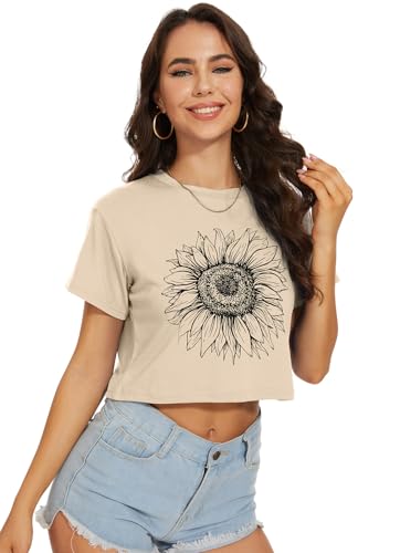 Women’s Summer Crop T-Shirts Short Sleeve Round Neck Casual Tops Loose Fit Tee Blouse