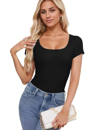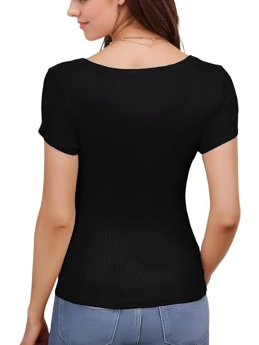 Womens Summer Tops Basic Short Sleeve T Shirts Scoop Neck Y2K Tops Workout Clothes
