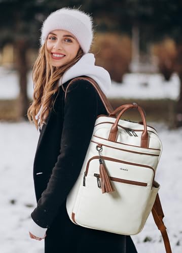 Shrrie Laptop Backpack for Women 15.6 inch Travel Leather Backpack Purse Work Computer Backpacks for Business College