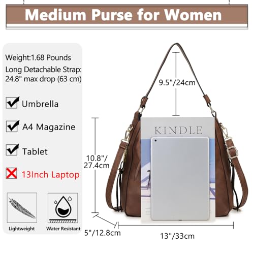 VONXURY Hobo Bags for Women, Fashion Ladies Purse and Handbags Faux Leather Shoulder Bags with Detachable Long Strap