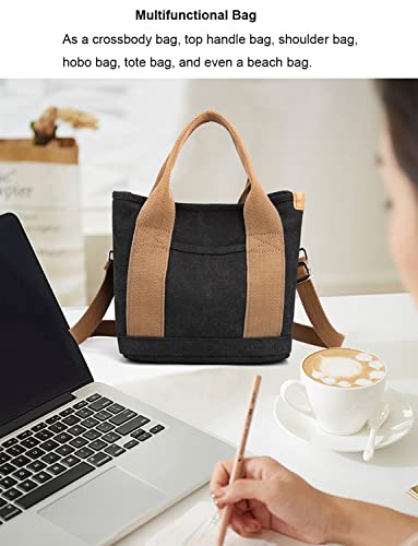 Handbag for Women Small Multi-Pockets, Canvas Mini Tote Shoulder Bags with Zipper, Satchel Hobo Bag for Travel Work