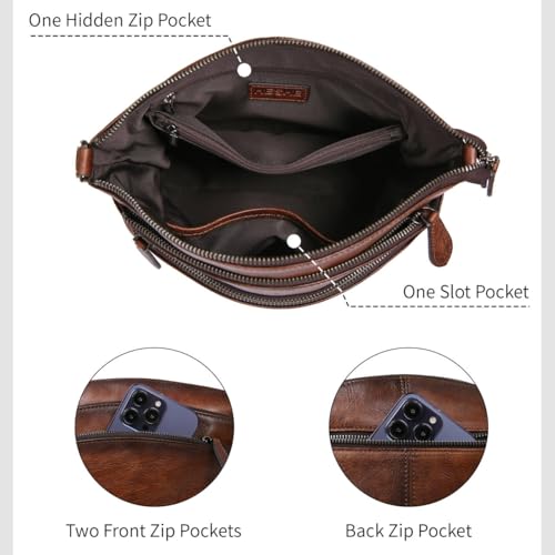 Heshe Womens Crossbody Bags Genuine Leather Handbags Shoulder Bag Small Purses Designer Satchel Purse