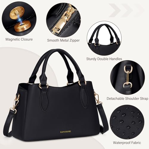 RAINSMORE Purses for Women Leather Handbags Small Top-Handle Bag Waterproof Hand Bags for Womens Ladies Satchel bags