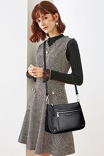 Over Earth Soft Genuine Leather Crossbody Bags for Women Medium Shoulder Purses Hobo Handbags with Multi Pockets