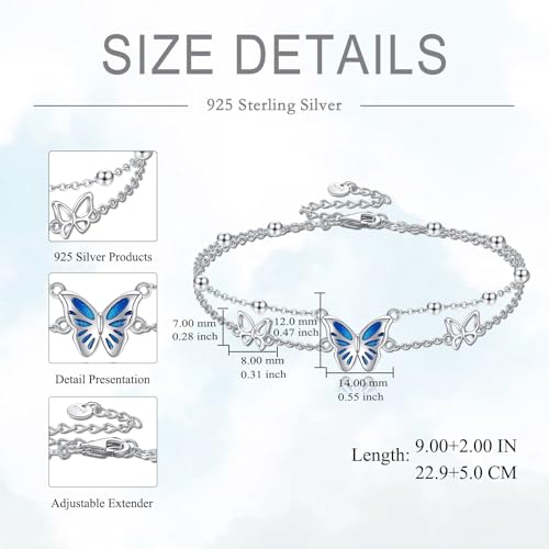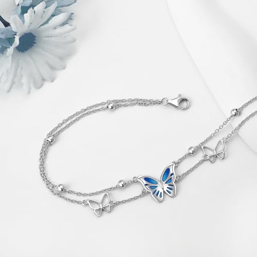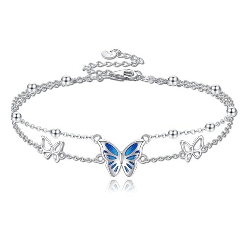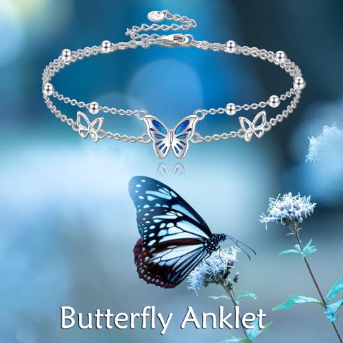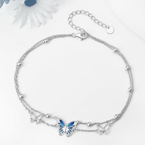 Butterfly Anklet for Women S925 Sterling Silver Foot Ankle Bracelet for Women Adjustable Ankle Feet Jewelry for Women Her
