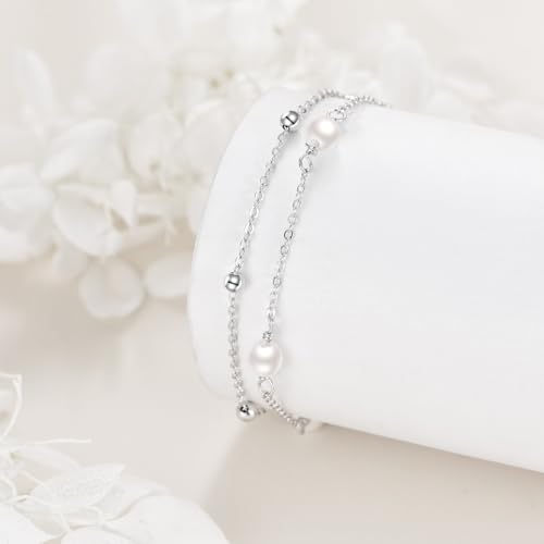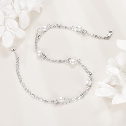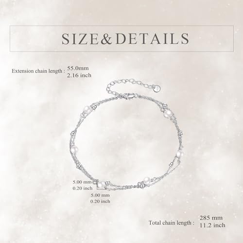 Pearl/Larimar/Turquoise/Moonstone/Black onyx/Rose Quartz Anklet Braceket for Women S925 Sterling Silver Adjustable Pearl Bead Layered Plus Ankle Bracelet Beach Jewelry Gift