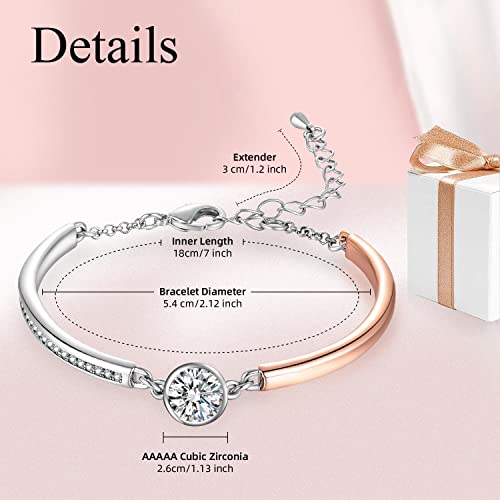 Angelady Bracelets for Women, 18K Rose Gold Plated Adjustable Bracelets, Charm Bracelets for Women with Cubic Zirconia Jewelry Bracelet Valentine’s Mothers Day Gifts for/Girlfriend/Wife | Size 7 Inch