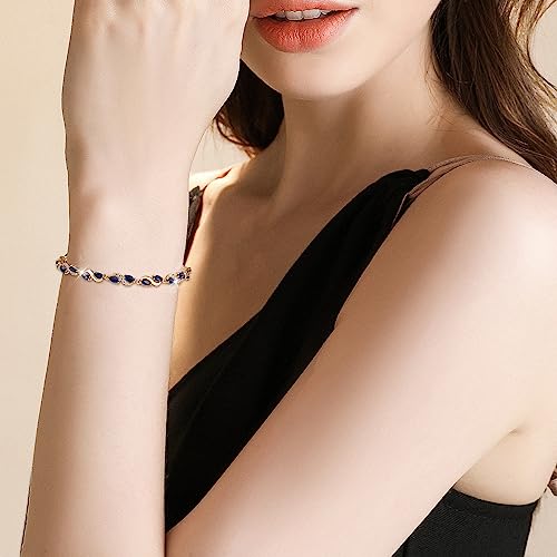 Classic Elegant Design: The tennis bracelet for women is use leaf shape with meticulously cut delicate sparkling 3A blue rhinestones and cubic zirconia, trendy elegant design never out, it will suitable any age and any style.