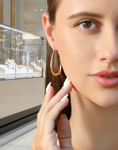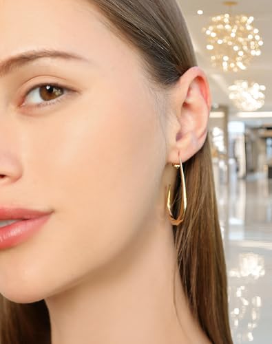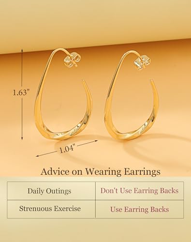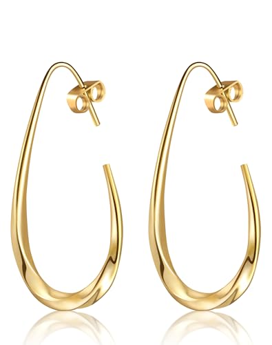 14k Gold Plated Teardrop Hoop Earrings for Women,Lightweight Hypoallergenic Oval Hoop Mobius Earrings
