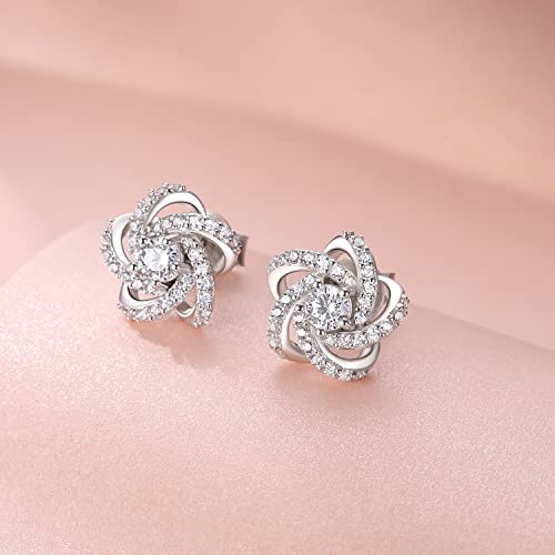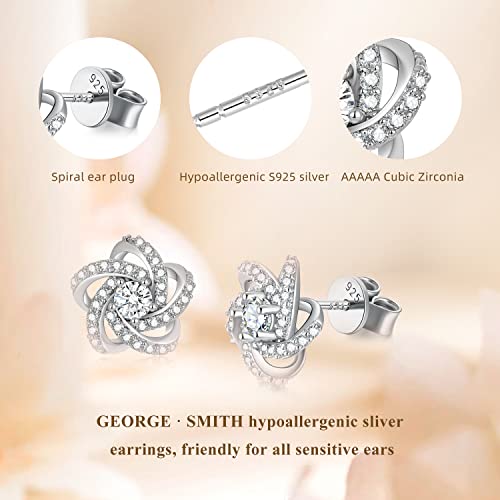 GEORGE · SMITH 925 Sterling Silver Earrings for Women, Flower Stud Earrings Hypoallergenic Silver Earrings, 5A CZ Earrings Mother’s Valentine’s Day Gifts for Her-10 * 10mm