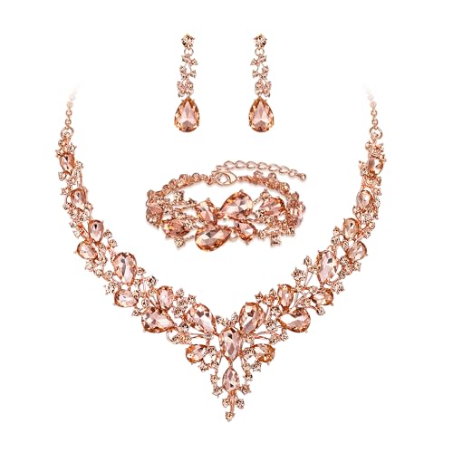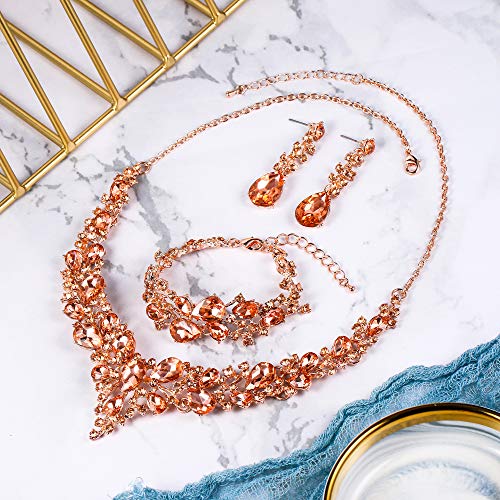 BriLove Bridal Jewellery Set for Wedding Women Austrian Crystal Teardrop Cluster Statement Necklace Dangle Earrings Link Bracelet