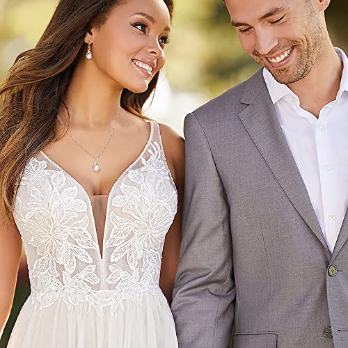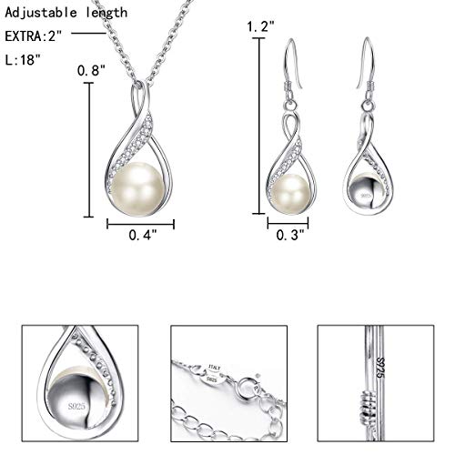 EleQueen Infinity Bridal Necklace Hook Earrings Set 925 Sterling Silver Cubic Zirconia Cream Freshwater Cultured Pearl Clear for Women, Valentine’s Day/Mother’s Day/Christmas Jewerly Gift for friend/Mom