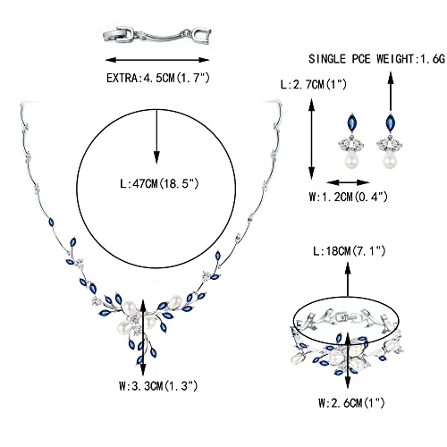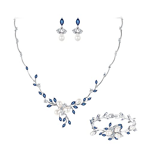 EVER FAITH Bridal Flower Leaf Filigree Jewelry Set for Wedding, Marquise CZ Simulated Pearl Necklace Earrings Bracelet Gift for Women
