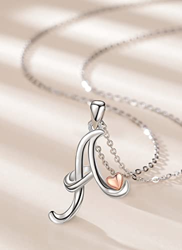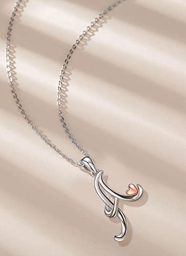 CELESTIA Sterling Silver Initial Necklaces 26 Letter Pendant with Rose Gold Heart – 18 Inch Chain