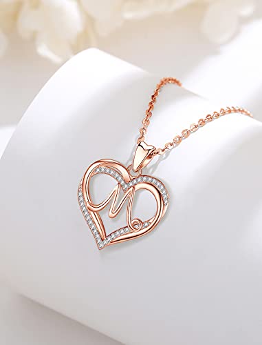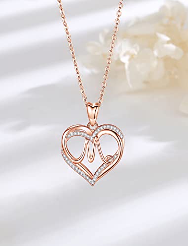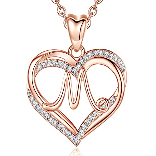 INFUSEU Heart Initial Necklaces for Women Girls, A-Z Letter Jewelry Rose Gold Romantic Gifts for Her