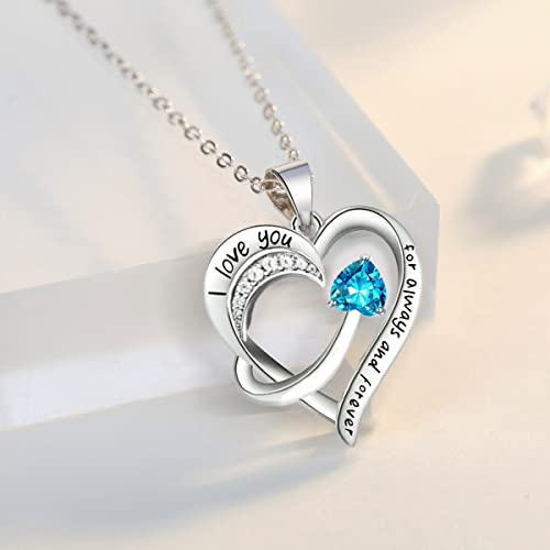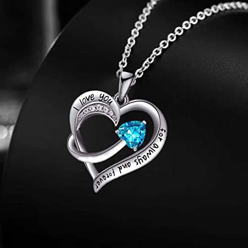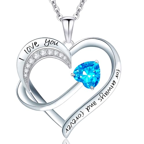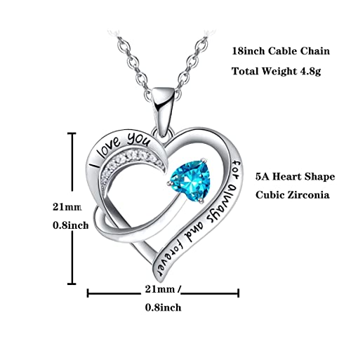 Love Heart Pendant Necklace for Women 18k White Gold Plated 5A Cubic Zirconia Engraved I Love You Jewelry Gift for Girls Wife