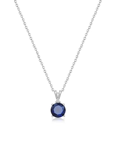 Sapphire Necklace 925 Sterling Silver Dainty Round Necklace Birthstone Necklace Sapphire Jewelry Blue Pendant Necklaces for Women