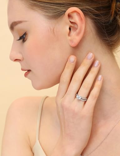 EAMTI 1.25CT 925 Sterling Silver Bridal Ring Sets Round CZ Engagement Rings Promise Rings for Her Wedding Bands for Women Size 3-11
