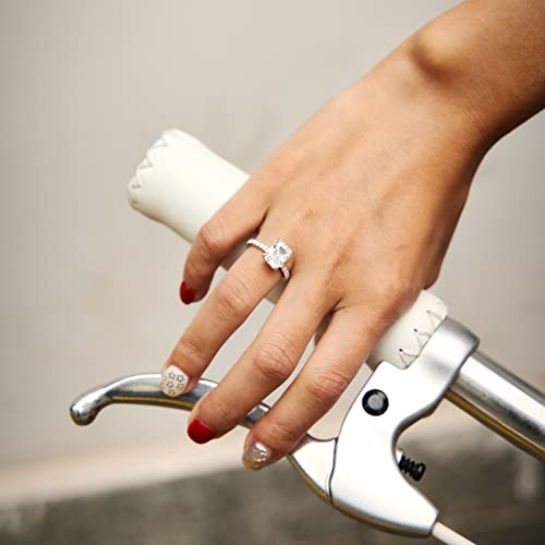 EAMTI 3CT 925 Sterling Silver Engagement Rings Radiant Cut Solitaire Cubic Zirconia CZ Wedding Promise Rings for Her Wedding Bands for Women Size 3-11