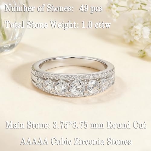 Newshe Eternity Ring Wedding Band for Women 925 Sterling Silver 1.13ct Round White AAAAA Cz Size 4-13
