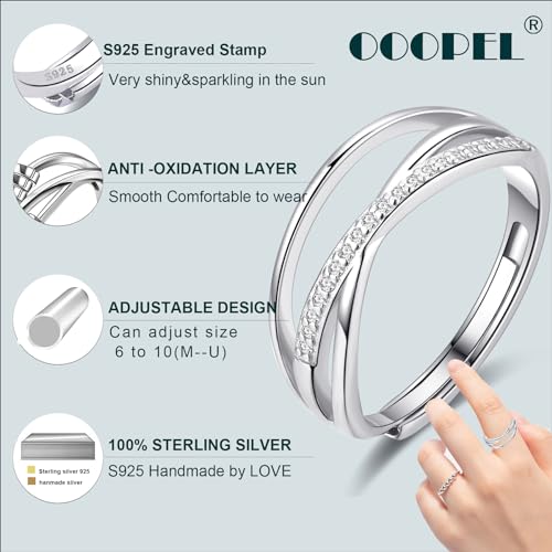 Sterling Silver Adjustable Ring S925 Silver Rings for Women Cubic Zirconia Twist Love Knot Dainty Ring Silver Minimalist Open Finger Rings Silver Thumb Sterling Silver Ring