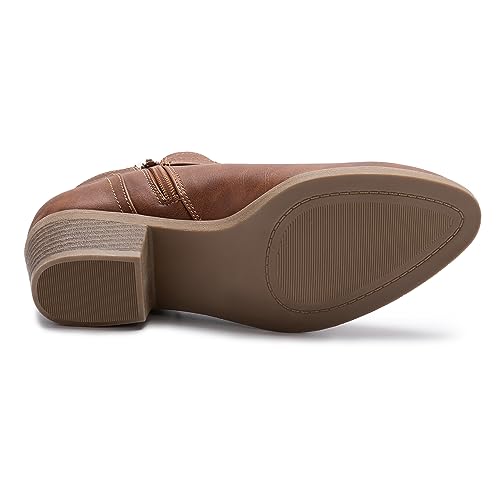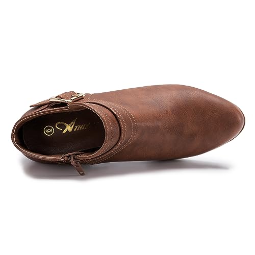 Athlefit Women’s Ankle Boots, Chunky Heel Short Boots for Women, Classic Pointed Toe Fall Shoes for Women with Classic Side Zip, Cover with Buckle Strap, Comfortable Platform Slip On Booties