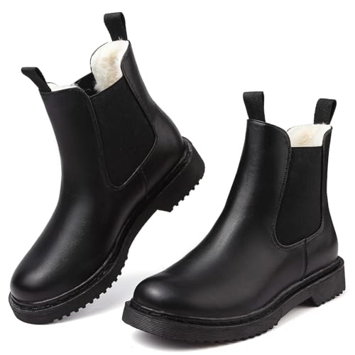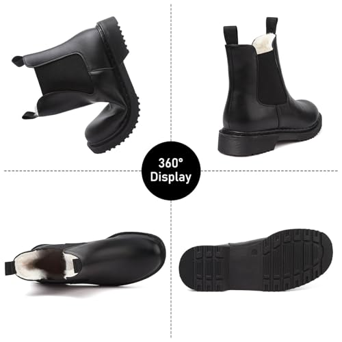 Women’s Chelsea Ankle Boots Waterproof Warm Fur Lined Winter Boots Fashion Slip-On Chunky Heel Casual Elastic Booties