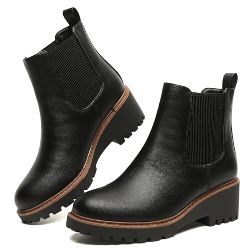 Women’s Wedge Chelsea Boots Elastic Platform Lug Sole Slip on Ankle Booties