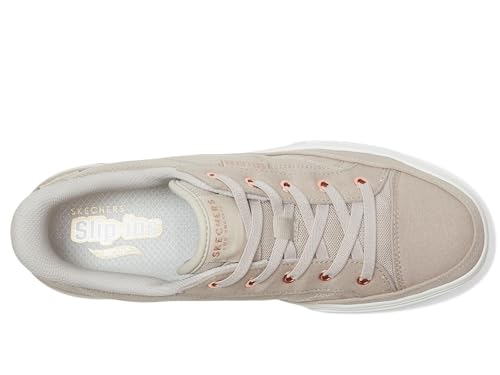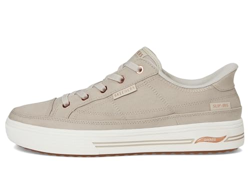 Stroll through the day in amazing cushioned comfort wearing Skechers Hands Free Slip-ins x Skechers Street Arch Fit Arcade – See Ya There. This casual sneaker has been granted the APMA Seal of Acceptance and features a canvas upper with a removable Arch Fit® insole, stretch laces, and a lightweight cushioned midsole.