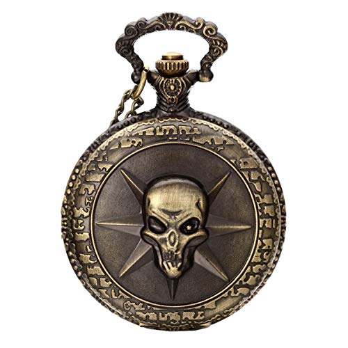 JewelryWe Men’s Women Skull Pocket Watch: Vintage Classic Pendant Necklace Watch Round Analog Quartz Pocket Watch with Chain for Mother’s Day