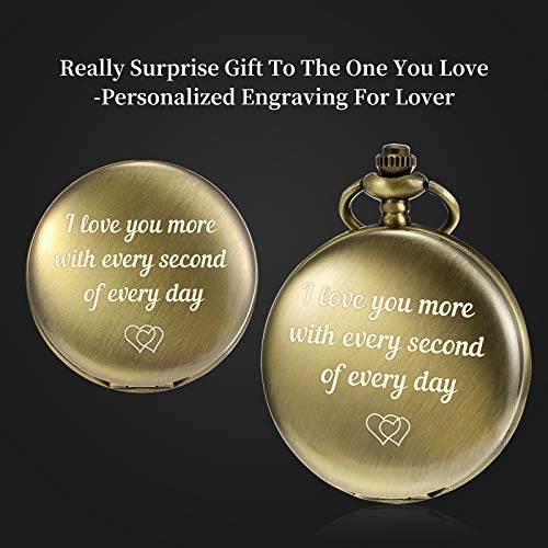 TREEWETO Pocket Watch to Husband Wife Boyfriend Girlfriend Birthday Personalized Engraving Gifts for Men Women Valentine’s Day Christmas